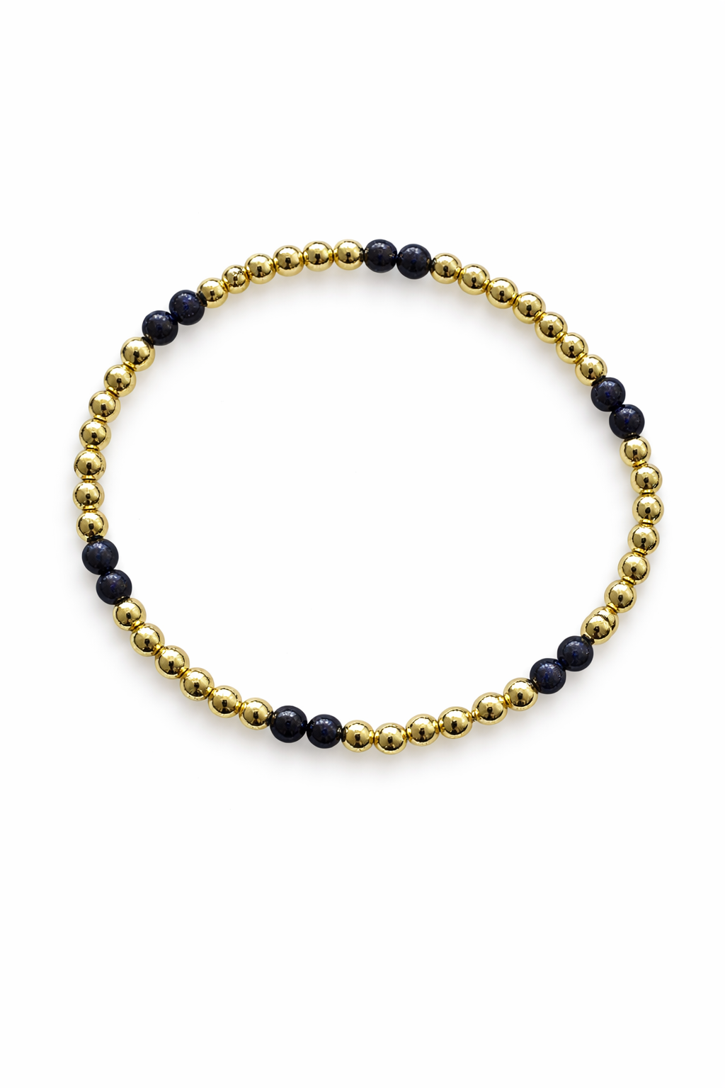 Verfijn je stijl met deze elegante kralenarmband van SieradenbyMari. De glanzende goldfilled details vormen een prachtig contrast met de natuurlijke blauwe goudsteen kralen, die elk een unieke schittering hebben.