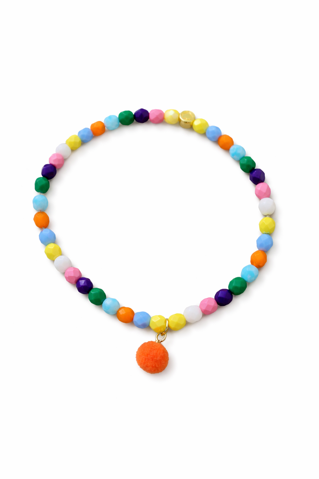 Breng kleur in je outfit met deze speelse en vrolijke enkelband van SieradenbyMari. De combinatie van kleurrijke facetkralen en het schattige oranje pomponnetje zorgt voor een echte summer vibe.